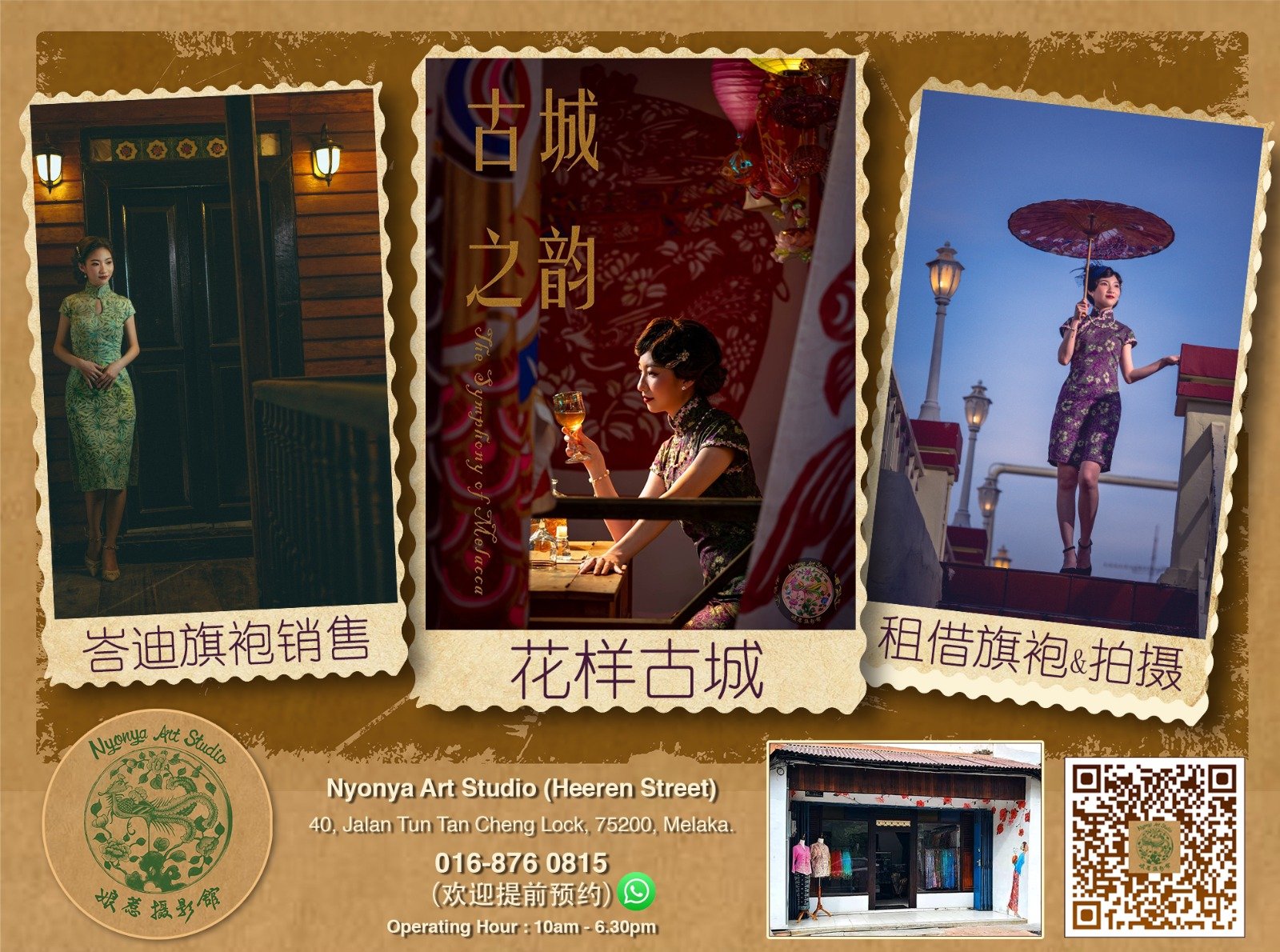 Welcome to Malacca, where you’re invited to immerse yourself in a day as a Nyonya, capturing moments worth cherishing forever. Whether you’re a beauty or a dashing gent, a child or an elder, a couple or a family, all are embraced in the warm invitation to our Nyonya Art Studio. Here, amid the delicate strokes of Peranakan artistry, let us paint memories on the canvas of time, preserving each precious moment in the vibrant palette of our hearts. So come, dear souls, and let us weave a tapestry of joy and beauty together, for in the embrace of Nyonya culture, every click of the camera is a celebration of life’s exquisite moments.