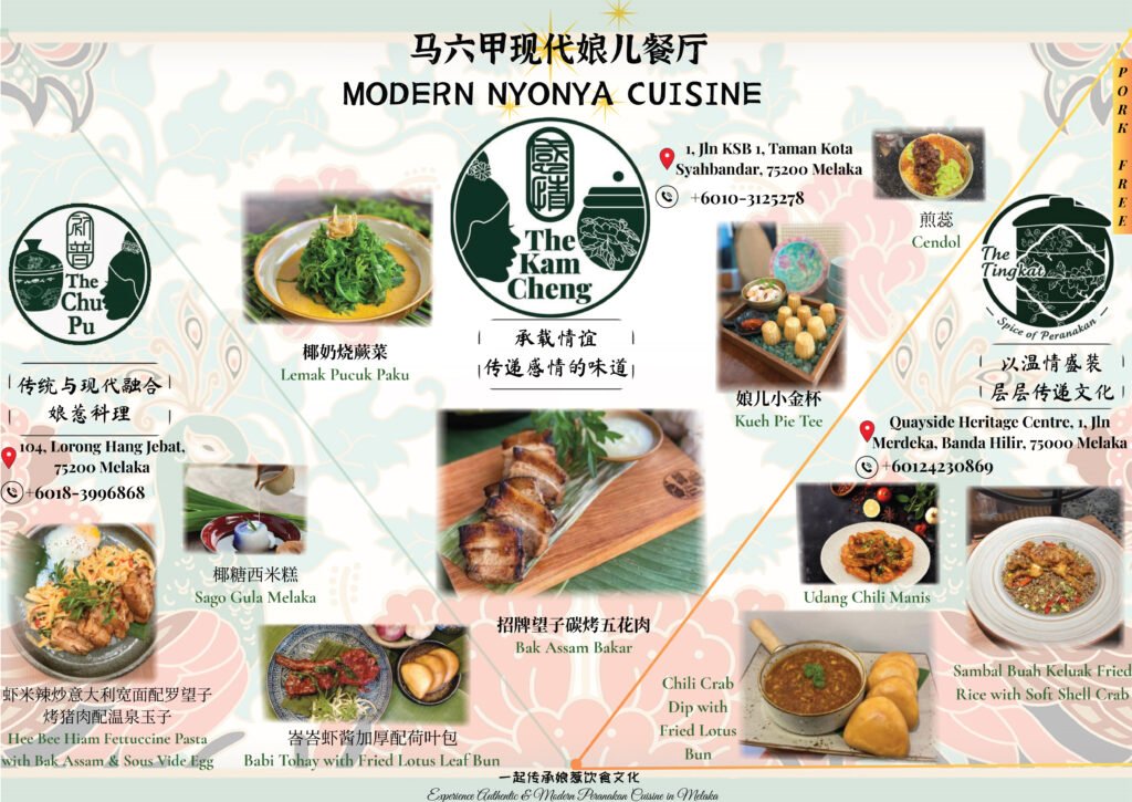 The KamCheng, a modern Peranakan restaurant in downtown Malacca, where Nyonya flavours are reimagined with care, detail, and soul—serving heartfelt dishes crafted from the heart.
